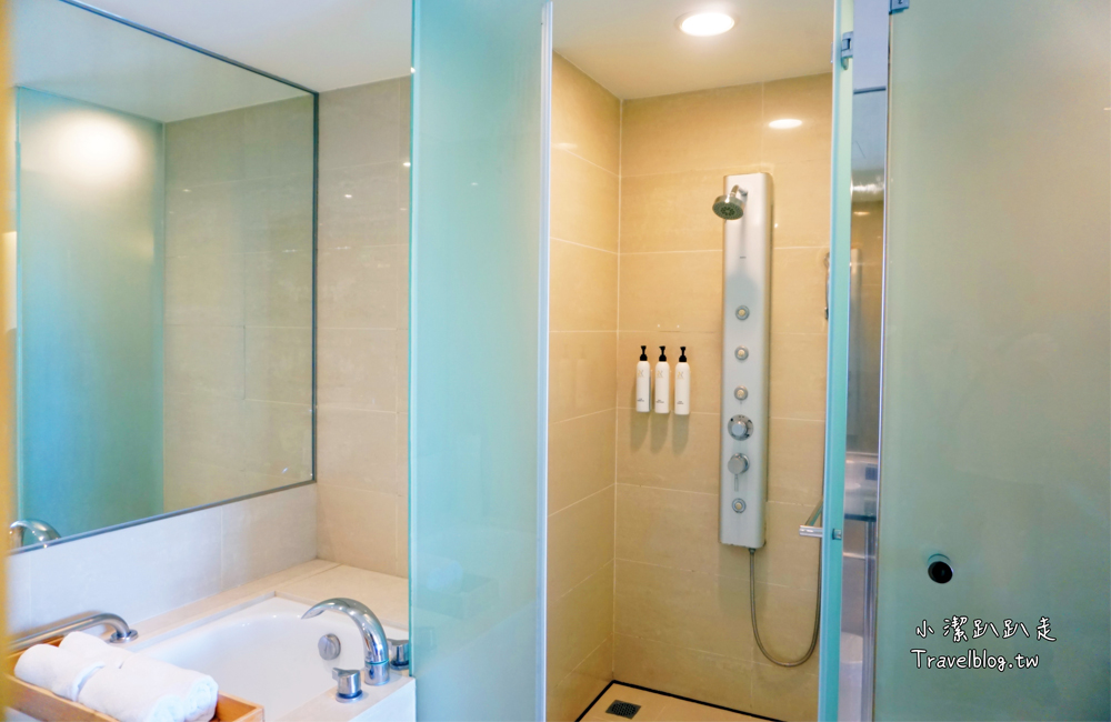 還有個簡易型淋浴柱水療SPA設計,很可以舒緩白天趴趴走的疲勞感。