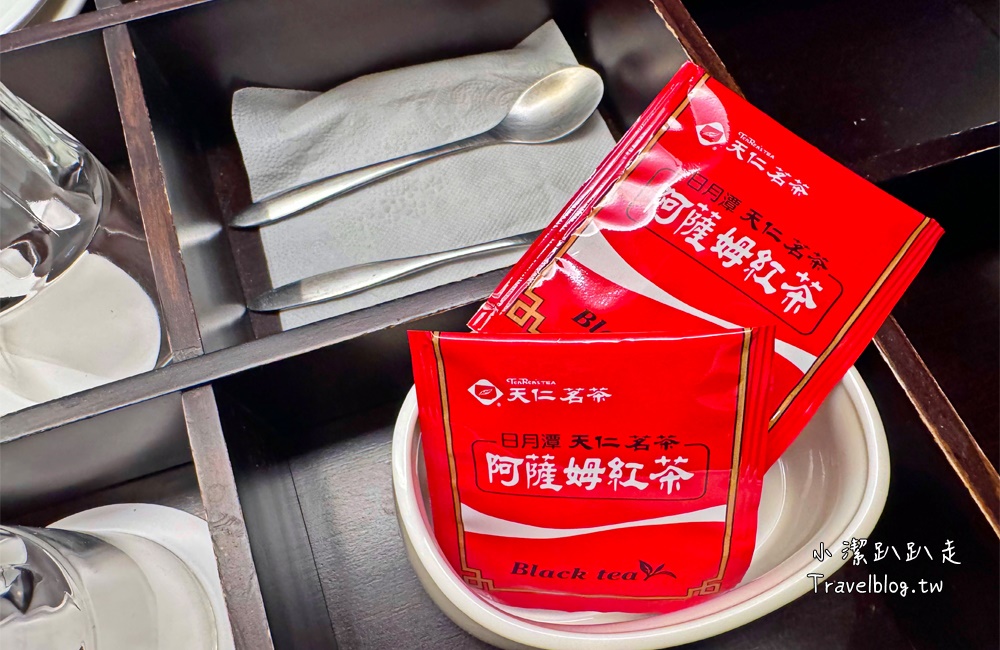 房內還有提供天仁茗茶的日月潭阿薩姆茶包,是魚池鄉在地的茶,小潔有泡來喝,好甘醇順口啊!
