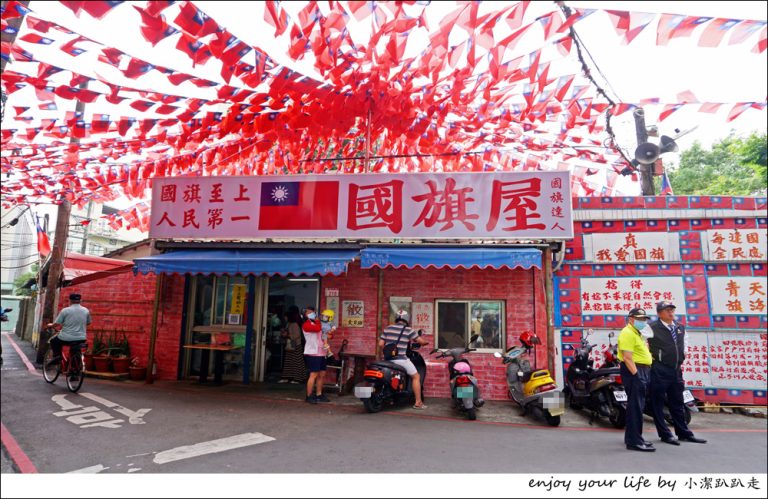 屋頂上全部都掛滿青天白日滿地紅的國旗, 看到這麼明顯的國旗標幟一定不會走錯家店。