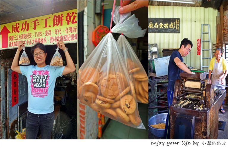 嘉義朴子美食,民國49年開賣『成功手工餅乾』飄香一甲子老味道!破千網路評價4.4顆星,內行人知道來買這一家,使用年代已久老機器製作出來的餅乾,每一種口味都是手工製作、烘烤,每種口味一包只要50元超便宜啦!越吃越香,應該會喚起很多有旅人童年記憶吧!